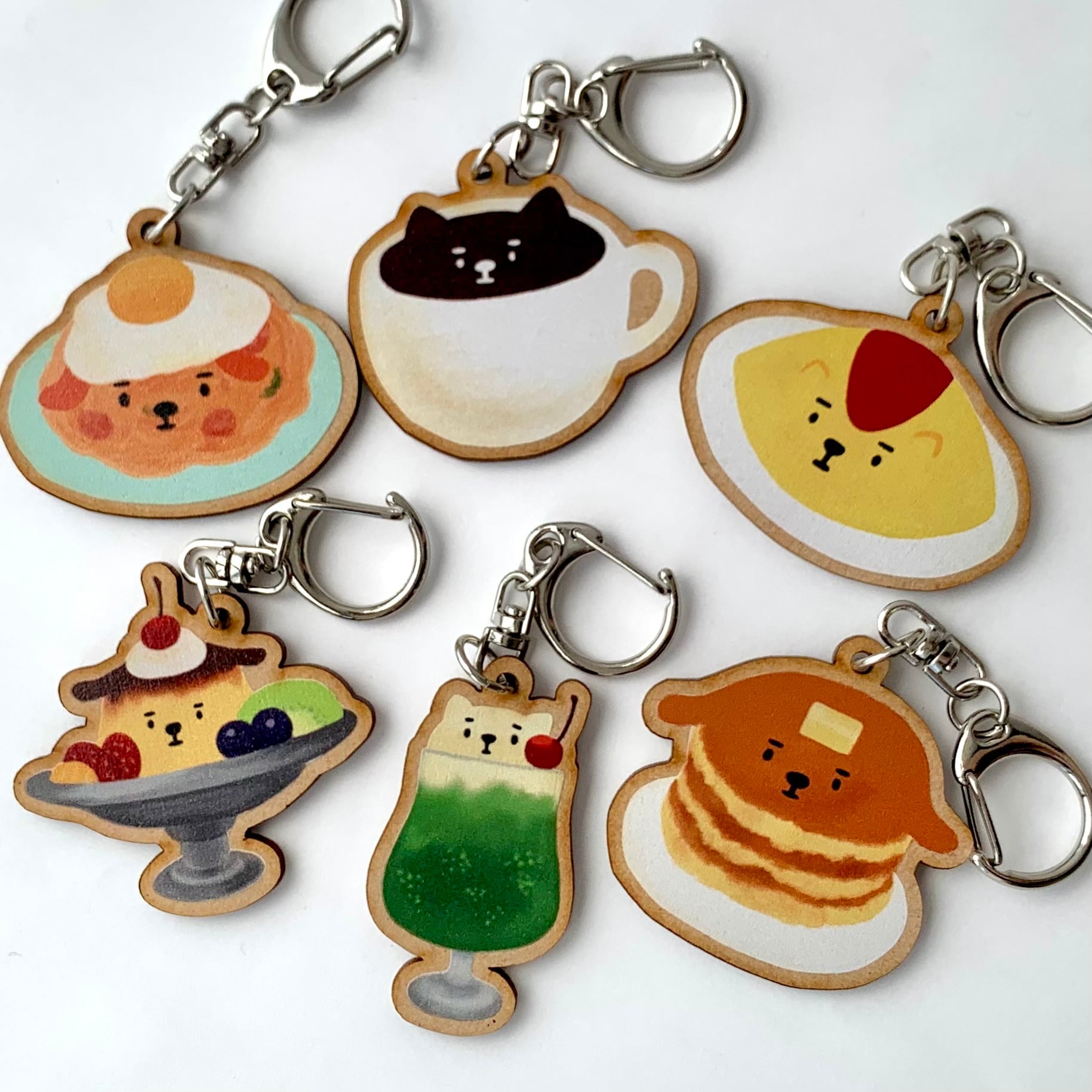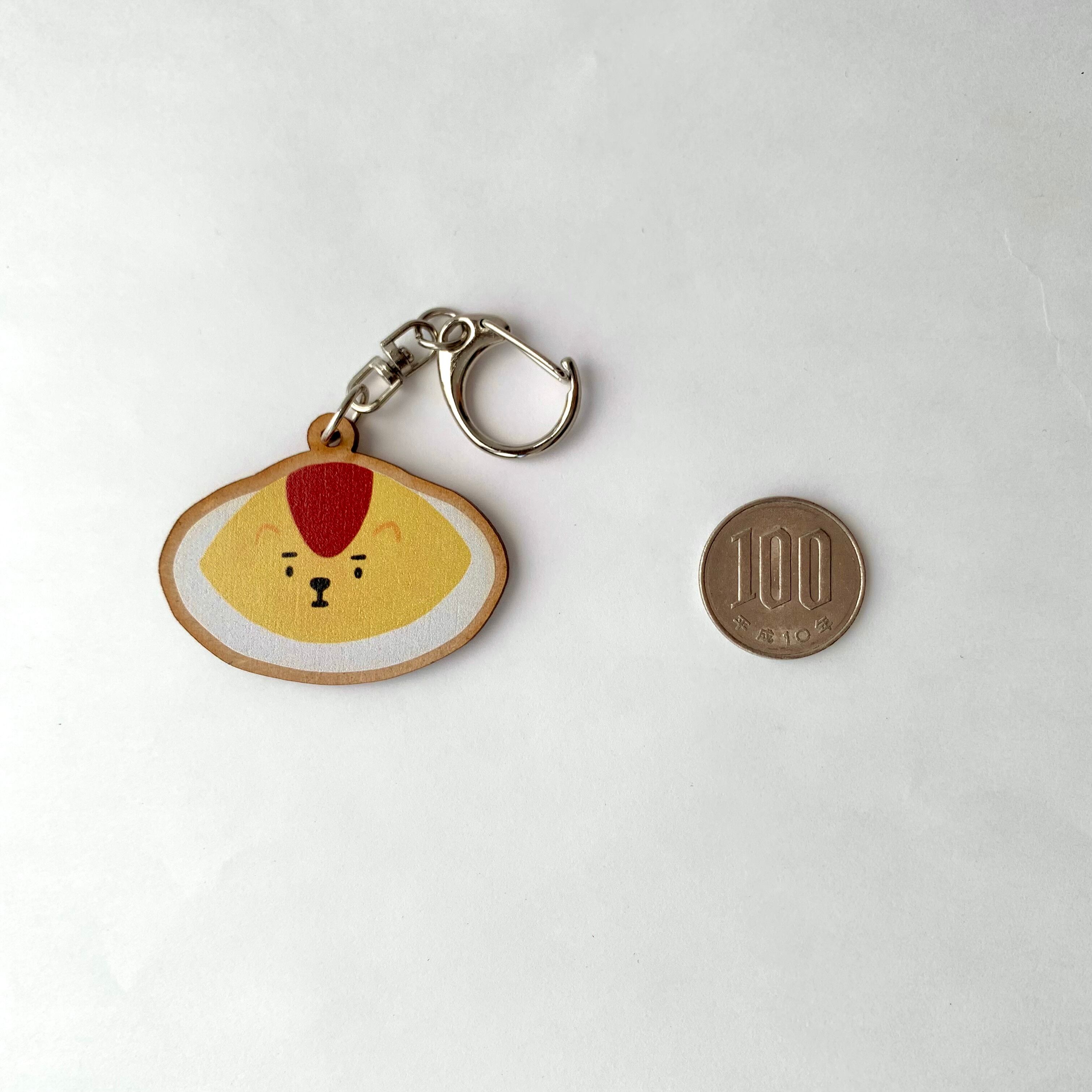 オムライス犬の木製キーホルダーです。